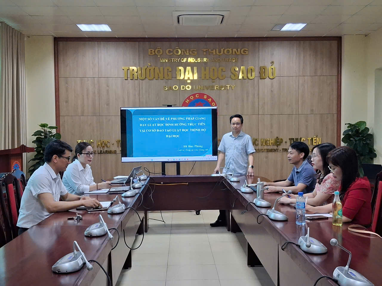 Nhận thức công tác bồi dưỡng giảng viên là nhiệm vụ quan trọng nhằm bổ sung, nâng cao kiến thức, kinh nghiêm trong quá trình giảng dạy, ngày 11/4/2026 tại phòng họp tầng 2 nhà B1, Bộ môn Giao dục chính trị thực hiện công tác bồi dưỡng giảng viên với chuyên đề phương pháp giảng dạy ngành luật cho chương trình đào tạo cử nhân luật do Luật sư, chuyên viên pháp lý, giảng viên. Hà Huy Phong - Trường Đại Luật Hà Nội giảng dạy.