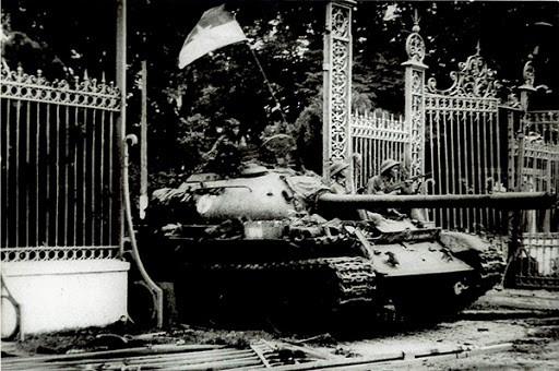 Xe tăng quân ta tiến vào Dinh Độc Lập 30/4/1975 (Ảnh Báo Sài Gòn giải phóng)