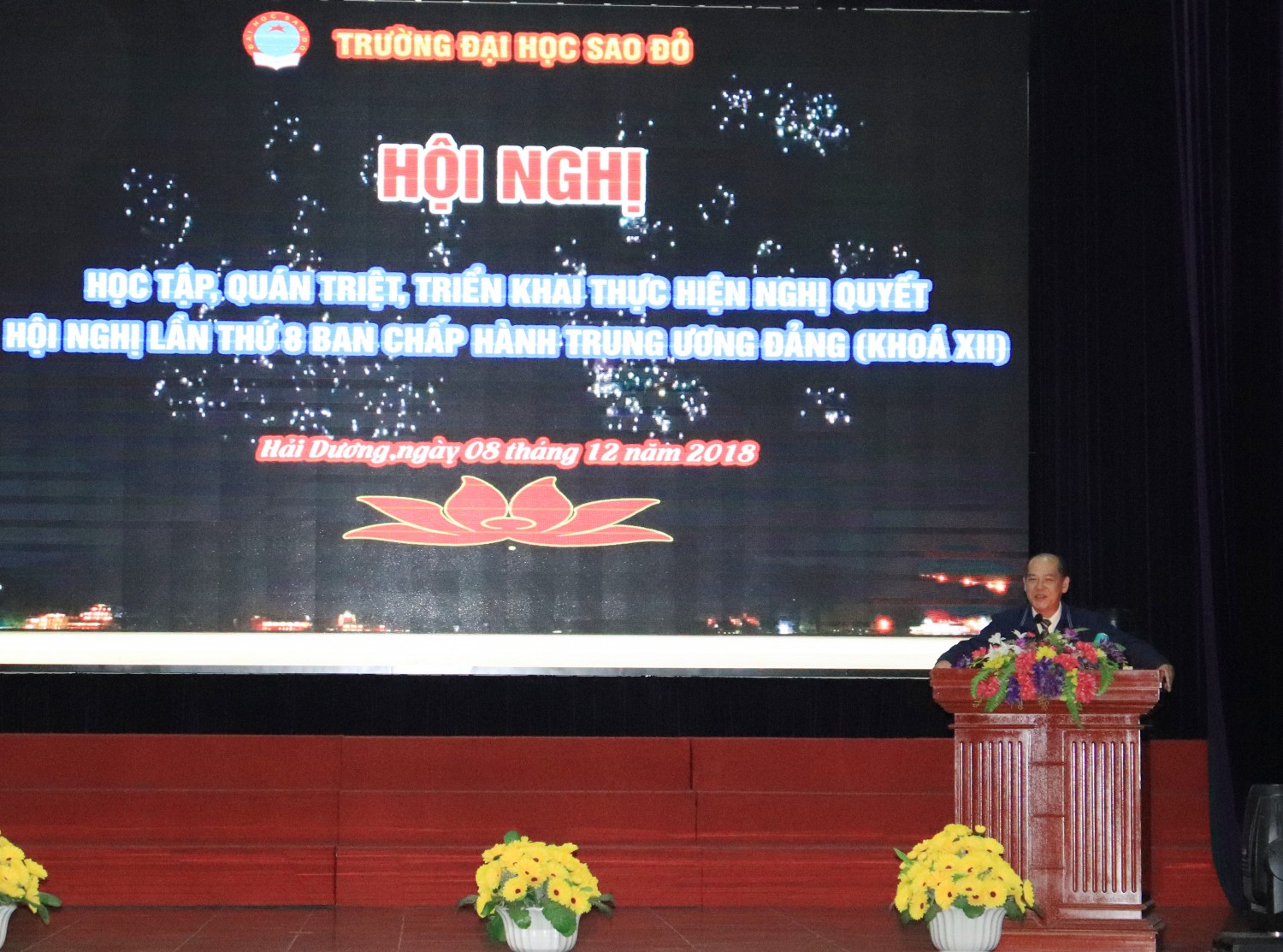 Mở đầu buổi học tập, quán triệt, triển khai thực hiện Nghị quyết Hội nghị lần thứ 8 Ban Chấp hành Trung ương Đảng (khoá XII) đồng chí Nguyễn Thị Kim Nguyên – Phó Bí thư Đảng ủy, Phó Hiệu trưởng nhà trường đã thay mặt Đảng uỷ tuyên bố lý do, giới thiệu đại biểu đến dự buổi học tập, quán triệt, triển khai thực hiện Nghị quyết Hội nghị lần thứ 8 Ban Chấp hành Trung ương Đảng (khoá XII), đồng thời nêu rõ sự cần thiết, yêu cầu của việc học tập Nghị quyết TW8 (Khóa XII) lần này.