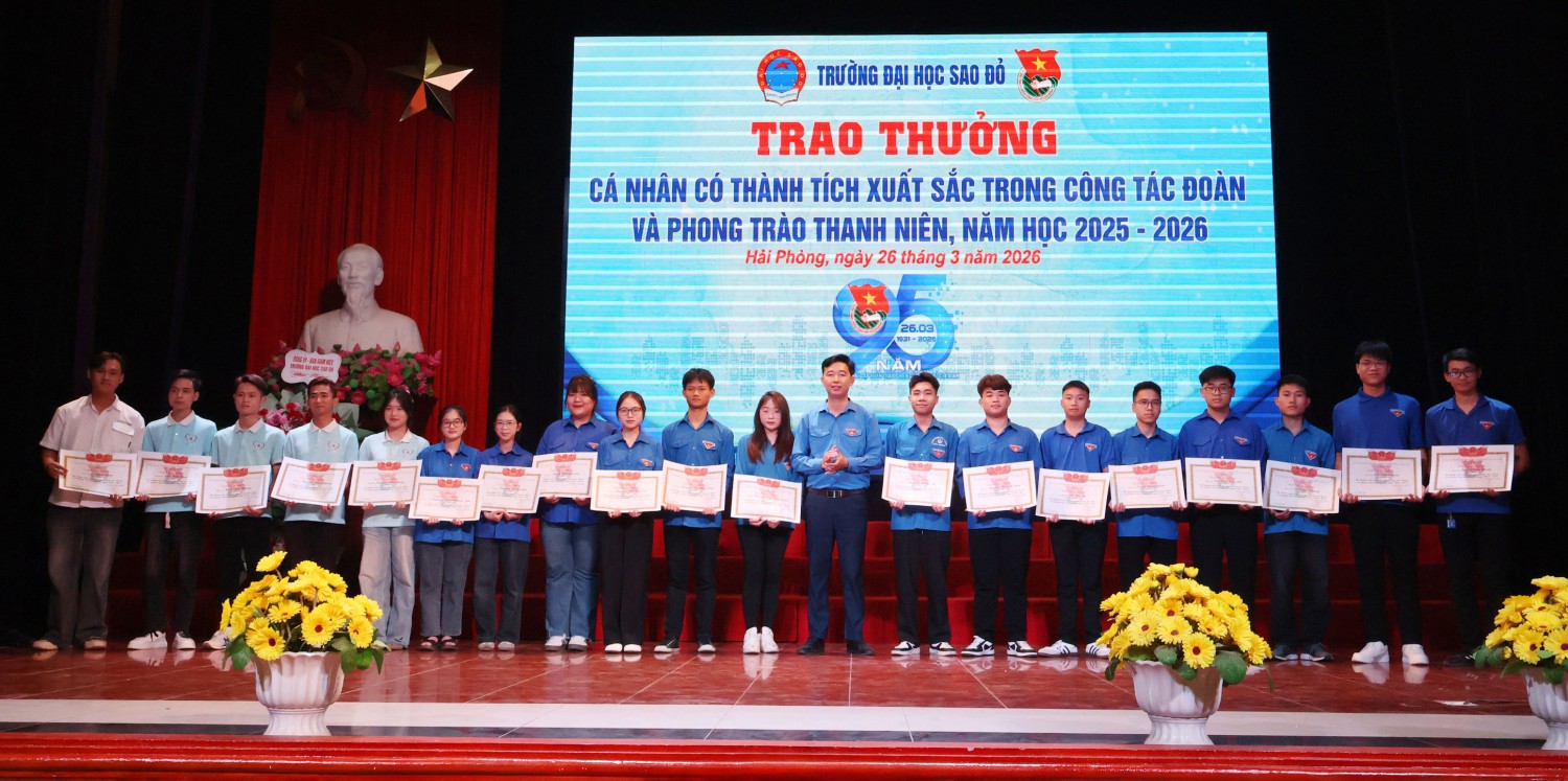 Tổng kết các hoạt động thi đua, Ban thường vụ Đoàn trường đã trao tặng Giấy khen cho 7 liên chi đoàn, 6 câu lạc bộ sinh viên và 50 sinh viên có thành tích xuất sắc trong công tác Đoàn và phong trào thanh niên năm học 2025-2026. Đồng thời trao giấy chứng nhận tình nguyện cho 31 tình nguyện viên có thành tích xuất sắc trong chương trình tình nguyện phục vụ Lễ hội mùa xuân Côn Sơn, Kiếp Bạc năm 2026; trao giải cho 7 tác phẩm xuất sắc tại Cuộc thi ảnh, video chủ đề “SDU Student moments 2026”.