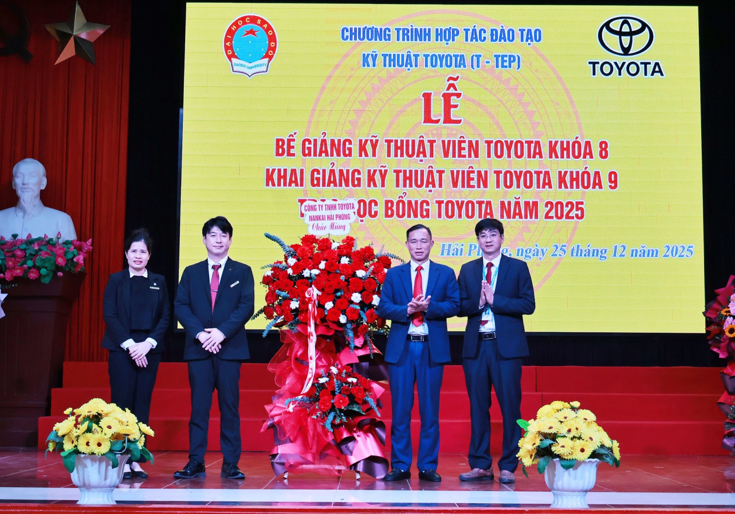 Nhằm khuyến khích, nâng cao tinh thần học tập trong sinh viên, Bộ Giáo dục và Đào tạo phối hợp với Công ty Toyota Việt Nam triển khai chương trình Học bổng Toyota năm học 2025-2026 dành cho 123 sinh viên của 18 trường đại học trên cả nước đạt thành tích cao trong học tập và nghiên cứu khoa học. 05 sinh viên Trường Đại học Sao Đỏ với thành tích xuất sắc trong học tập, nổi bật trong các phong trào thanh niên đã được Ban tổ chức lựa chọn trao học bổng tại lễ khai giảng. Đây là nguồn động viên giúp các em cố gắng hơn nữa trong học tập, phấn đấu trở thành những kỹ thuật viên xuất sắc của ngành công nghệ kỹ thuật ô tô trong tương lai.