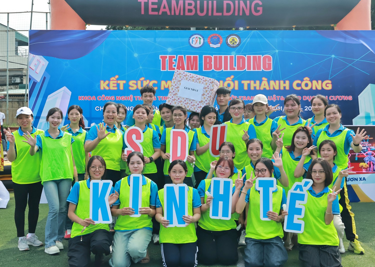Ngay từ sáng sớm, giảng viên và sinh viên các khoa Kinh Tế - May và Thời Trang - Luật & Giáo dục đại cương - Công nghệ thông tin đã có mặt tại sân vận động để tham gia hoạt động Teambuilding.