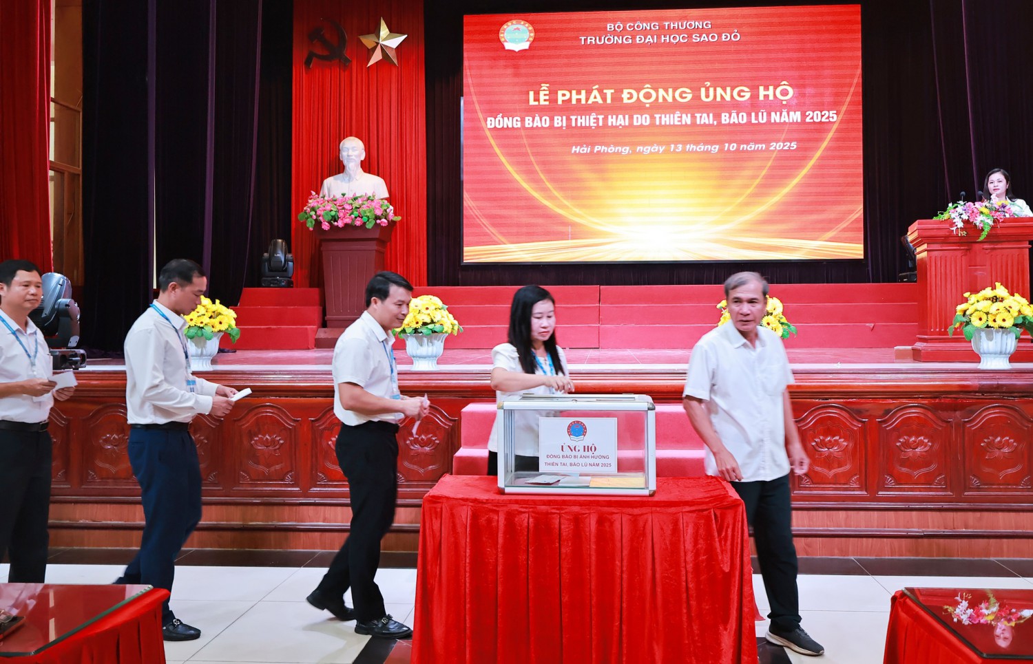 Sáng ngày 13/10/2025, tại hội trường đa năng toàn thể cán bộ, viên chức và sinh viên Trường Đại học Sao Đỏ đã đến dự và cùng chung tay ủng hộ, hỗ trợ đồng bào bị thiệt hại do thiên tai gây ra góp phần giảm bớt khó khăn, ổn định cuộc sống.
