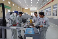 Giảng viên khoa Ô tô hướng dẫn thực hành cho sinh viên