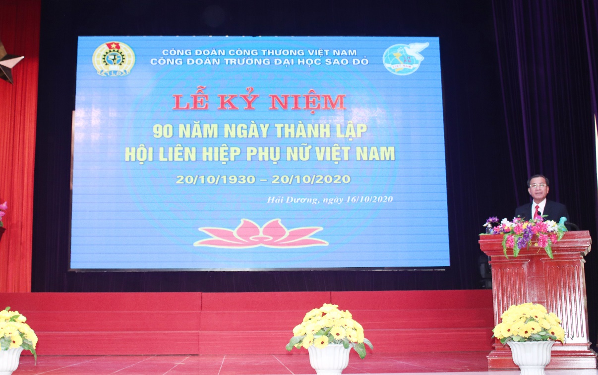 Tại lễ kỷ niệm NGND.TS. Đinh Văn Nhượng - Bí thư Đảng ủy, Hiệu trưởng đã tặng hoa, phát biểu chúc mừng và ghi nhận những đóng góp to lớn của nữ cán bộ viên chức trong sự nghiệp giáo dục và đào tạo của nhà trường. Thầy nhiệt liệt biểu dương những thành tích và khẳng định đây là kết quả của tinh thần vươn lên, góp phần vào sự phát triển chung của nhà trường.